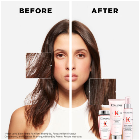 Formulated with a potent blend of Edelweiss Native Cells and Ginger Root, the Genesis Bain Hydra-Fortifiant Shampoo and Fondant Renforçateur Conditioner work together to reinforce the hair fiber, improve resilience, and leave hair softer, shinier, and more manageable after each wash. This daily-strengthening routine helps prevent future breakage and supports healthier-looking, fuller-feeling hair.